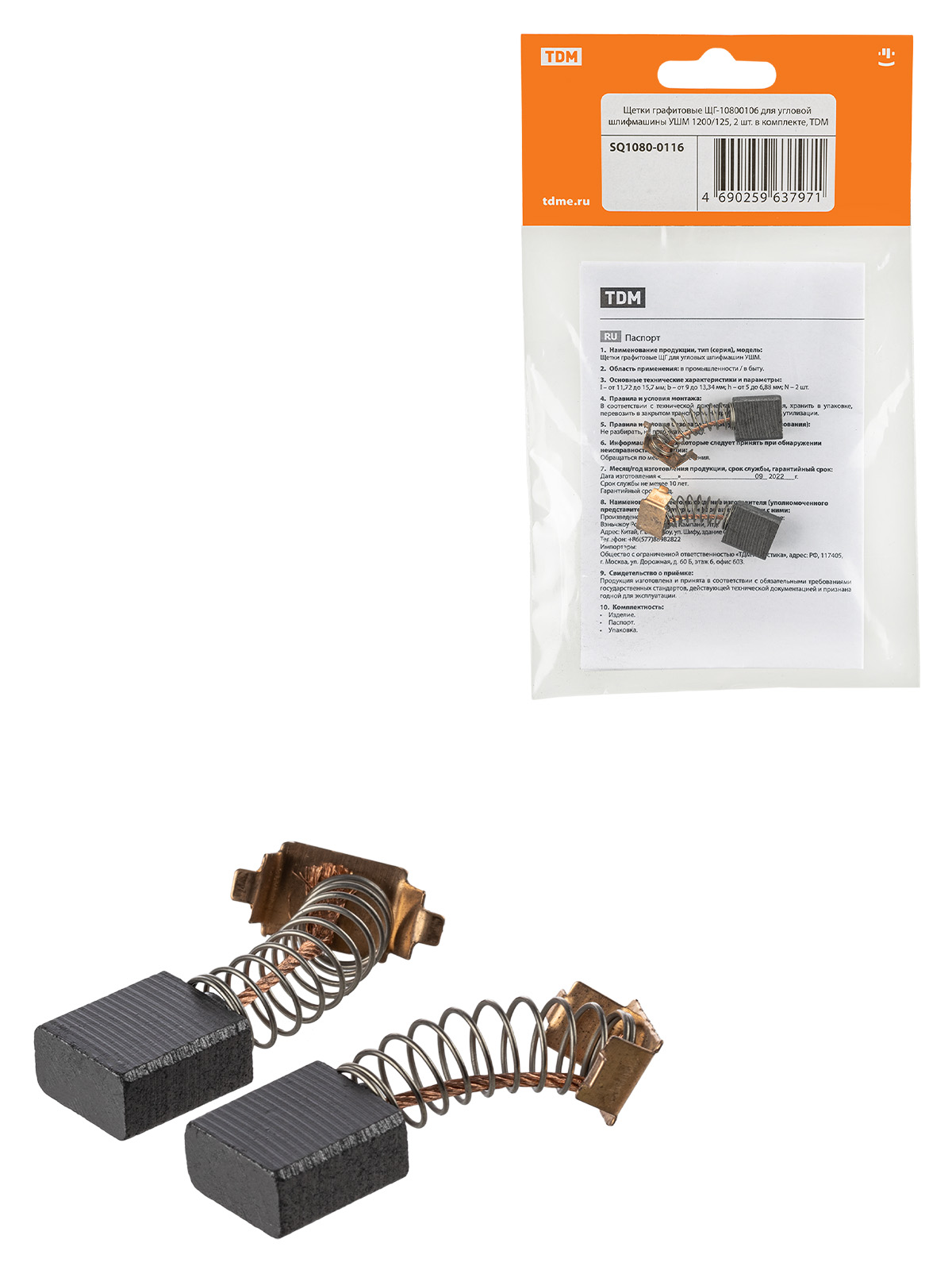 Наименование: Щетки графитовые ЩГ-10800106 для угловой шлифмашины УШМ 1200/125, 2 шт. в комплекте, TDM