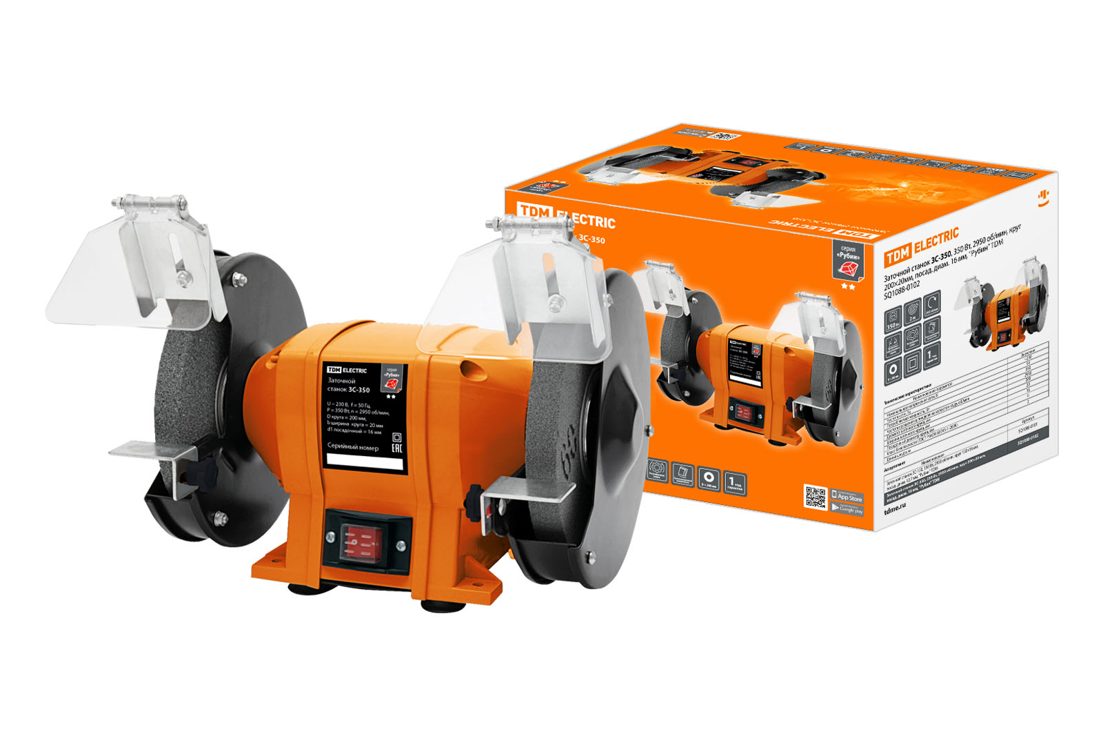 Наименование: Заточной станок ЗС-350, 350 Вт, 2950 об/мин, круг 200 ?20 мм, посад. диам. 16 мм, "Рубин" TDM