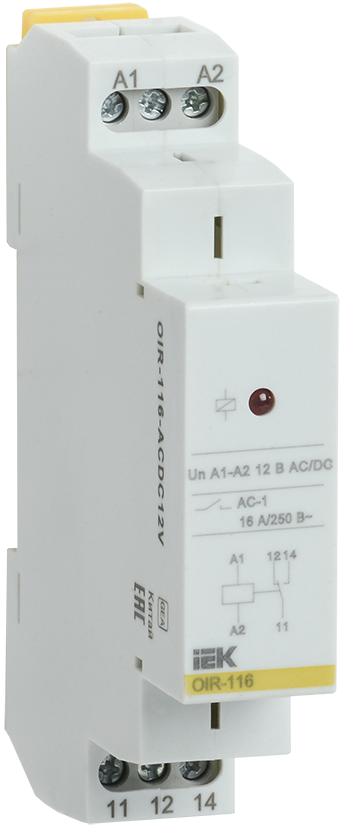 Наименование: Реле промежуточное модульное OIR 1 контакт 16А 12В AC/DC IEK