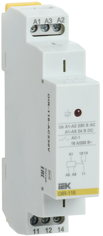 Наименование: Реле промежуточное модульное OIR 1 контакт 16А 230В AC IEK