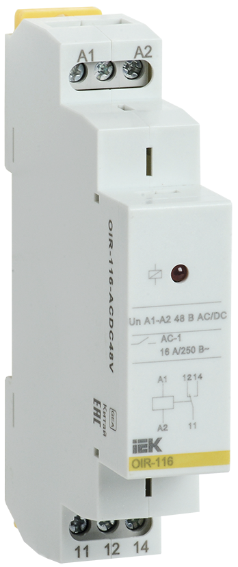 Наименование: Реле промежуточное модульное OIR 1 контакт 16А 48В AC/DC IEK