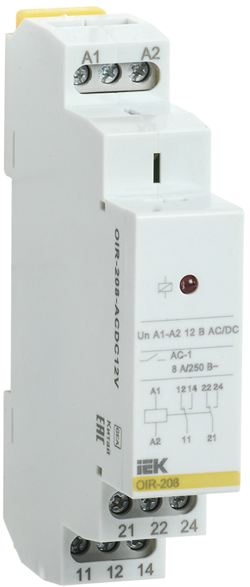 Наименование: Реле промежуточное модульное OIR 2 контакта 8А 12В AC/DC IEK