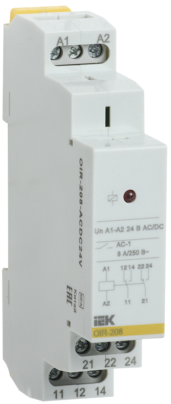Наименование: Реле промежуточное модульное OIR 2 контакта 8А 24В AC/DC IEK