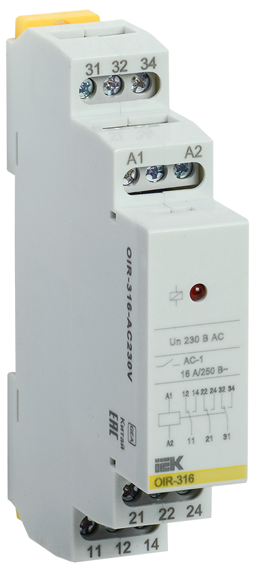 Наименование: Реле промежуточное модульное OIR 3 контакта 16А 230В AC IEK