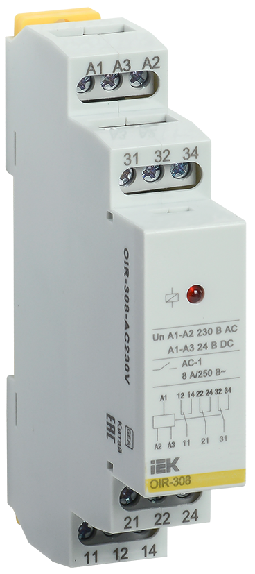 Наименование: Реле промежуточное модульное OIR 3 контакта 8А 230В AC IEK