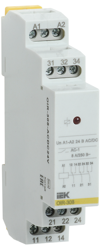 Наименование: Реле промежуточное модульное OIR 3 контакта 8А 24В AC/DC IEK