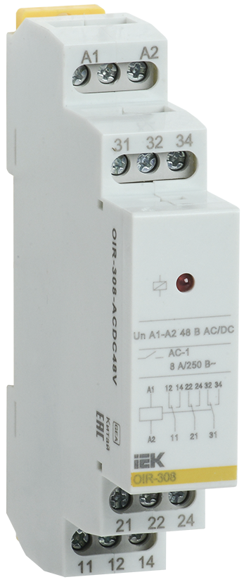 Наименование: Реле промежуточное модульное OIR 3 контакта 8А 48В AC/DC IEK