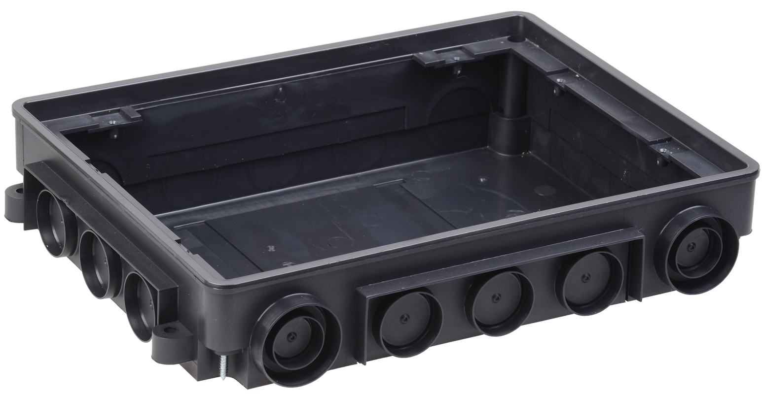 Описание: Коробка напольная ONFLOOR предназначена для установки в бетонные полы. После затвердения в коробку устанавливается напольный лючок на 12 модулей.