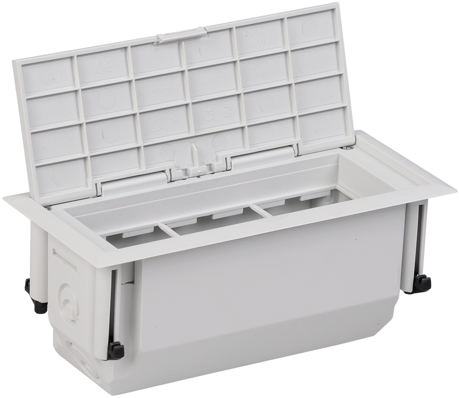 Преимущества: Надежная организация скрытого монтажа ЭУИ в полу. Высокая механическая прочность.