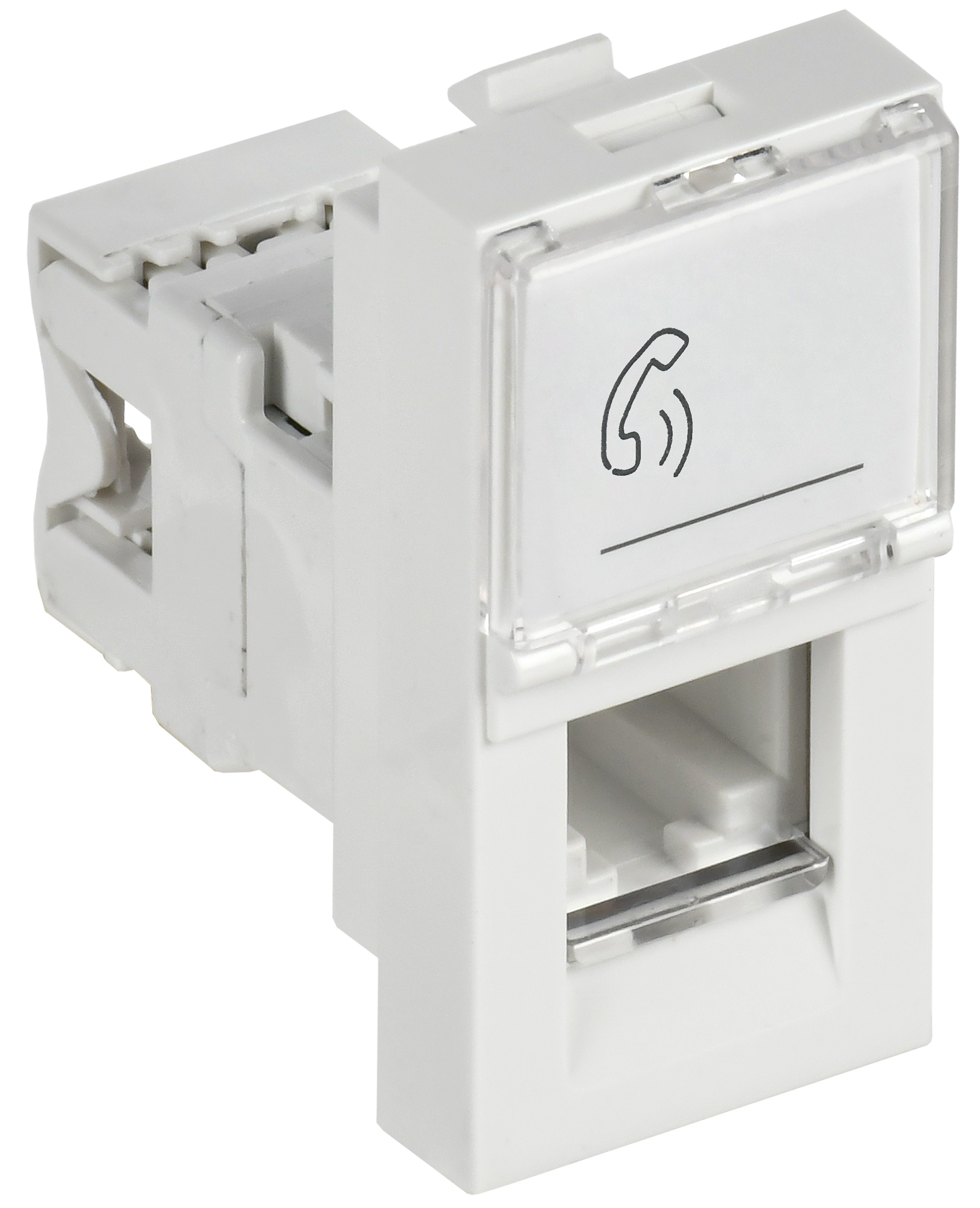 Описание: Модульные электроустановочные изделия 45х45 серии ПРАЙМЕР предназначены для организации рабочего места с применением кабель-каналов, напольных лючков или розеточных блоков, а также для открытого монтажа в коробки типа КМКУ. Розетка телефонная RJ-11 предназначена для подключения устройств абонентской телефонной техники, устанавливаемых в жилых, общественных и промышленных помещениях, к линиям телефонной сети. Розетка на 1 вход. Комплектуются одним модулем Keystone Jack категории 3 IDC. Размеры, ВхШхГ,мм: 45х22,5х41,7. Цвет - белый. Размеры модульных ЭУИ ПРАЙМЕР: 1 модуль = 45х22,5 мм 2 модуля (1 пост) = 45х45 мм