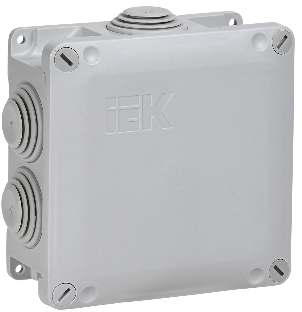 Наименование: Коробка распаячная КМ для открытой проводки 110х110х50мм с крышкой на винтах IP65 6 гермовводов серая IEK