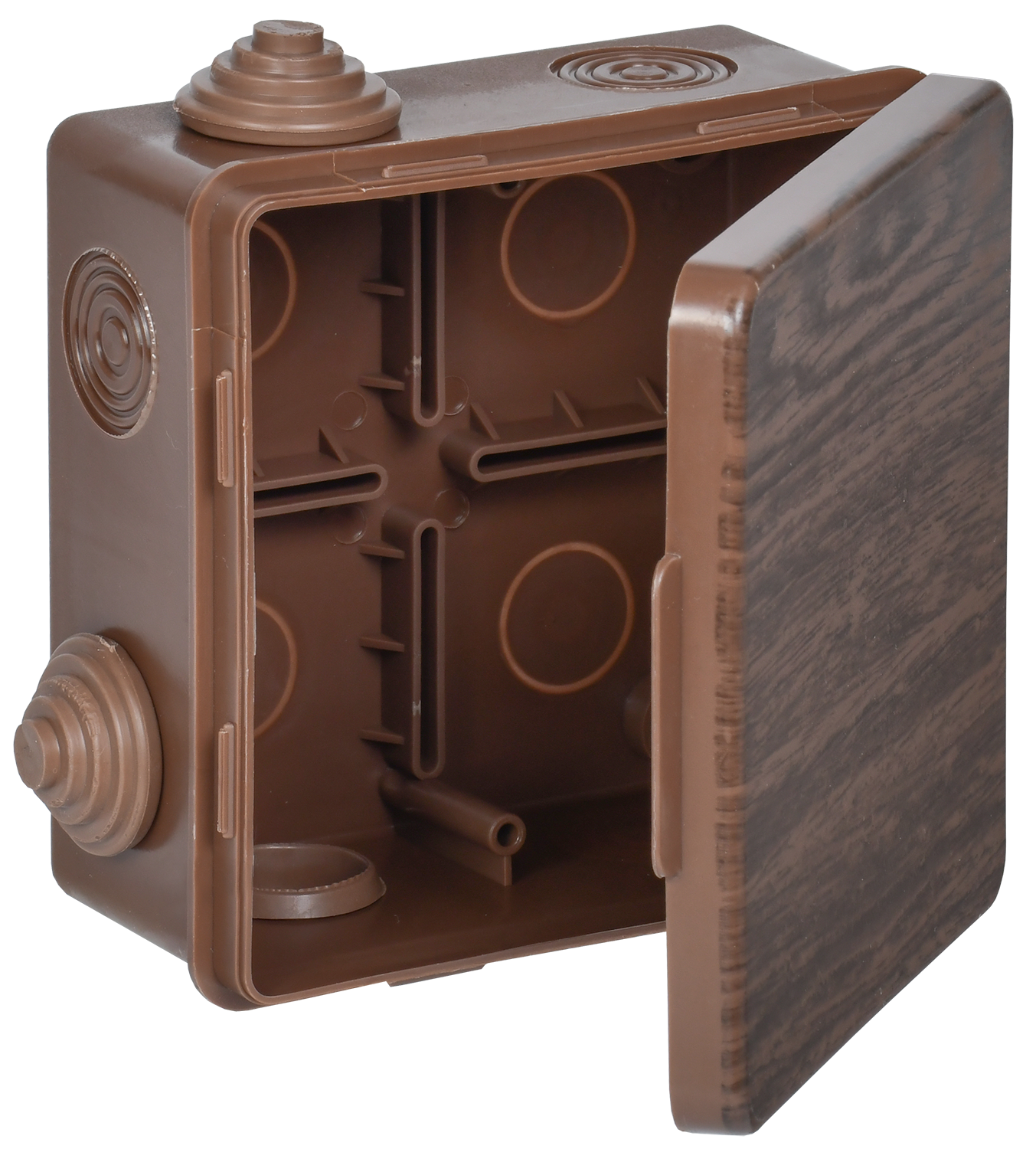 Наименование: Коробка распаячная КМ для открытой проводки с откидной крышкой 100х100х50мм IP54 8 гермовводов дуб IEK