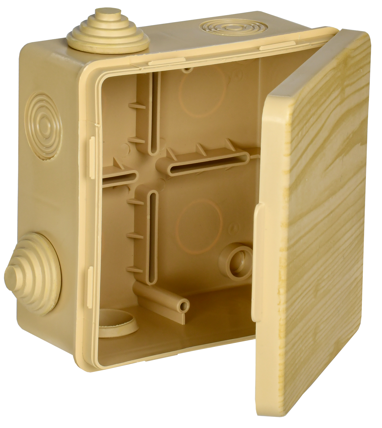 Описание: Монтажные коробки для открытого монтажа под структуру дерева предназначены для разветвления проводов и кабелей, также для скрытия и дополнительной защиты мест коммутации. Коробки для открытого монтажа используются как часть системы решений для деревянного домостроения, состоящей из гофрированных труб, клипс и коробок в цвет дерева.