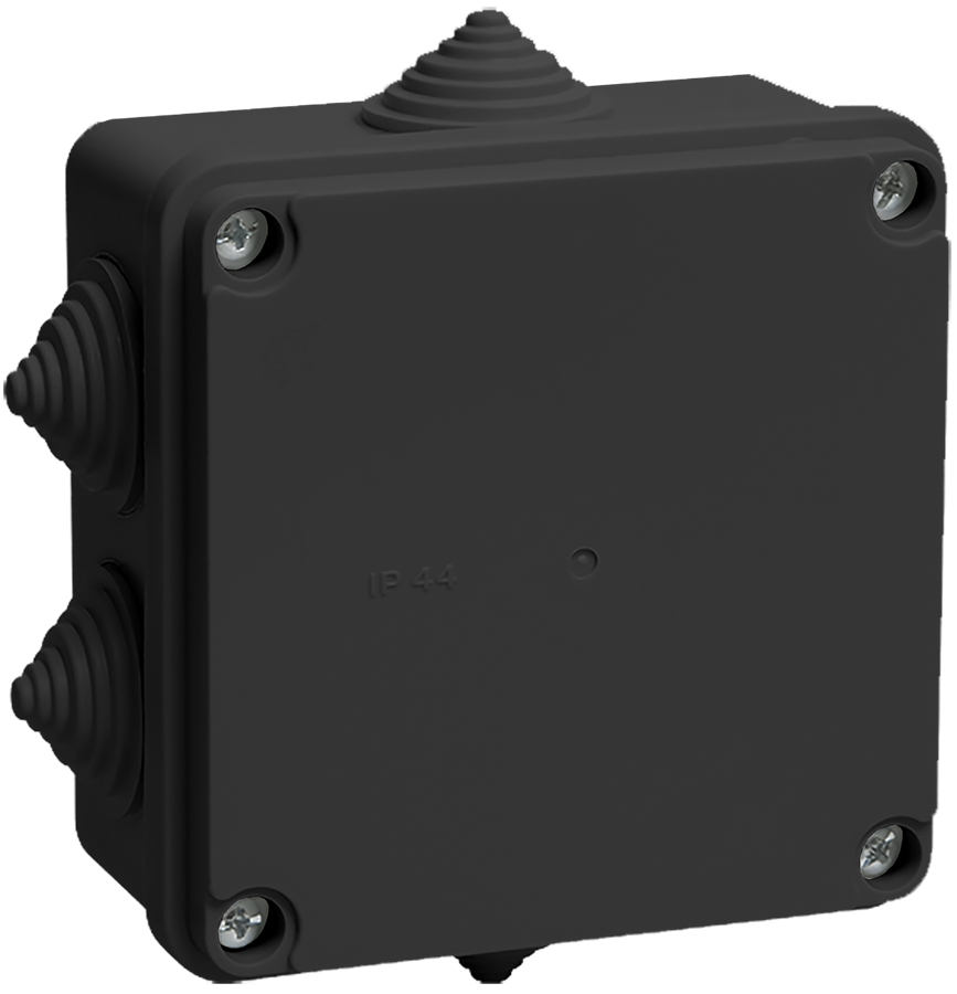 Наименование: Коробка распаячная КМ41234 для открытой проводки 100х100х50мм IP55 6 гермовводов черная (RAL 9005) IEK