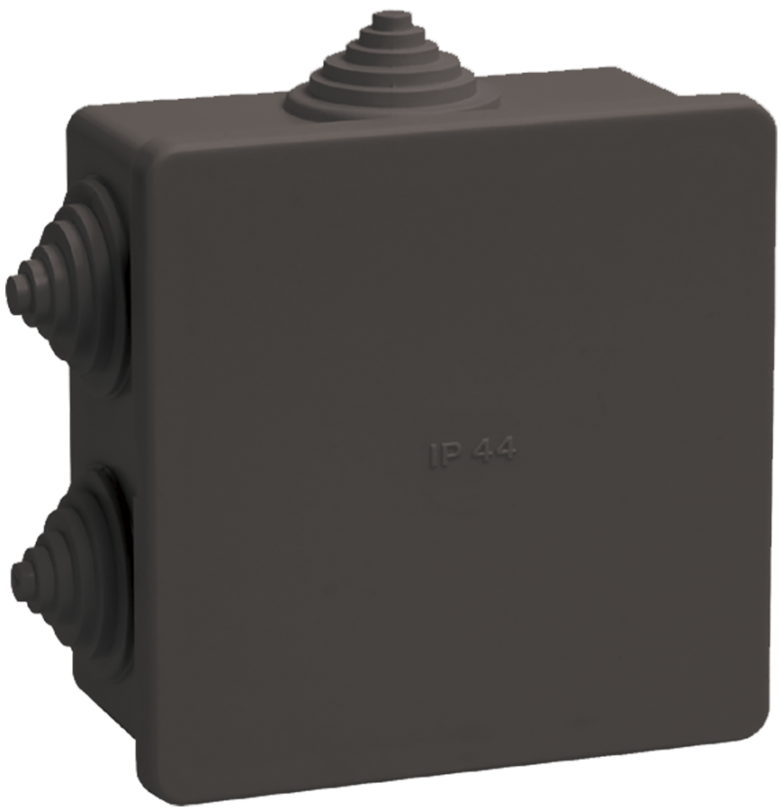 Наименование: Коробка распаячная КМ41235 для открытой проводки с защелкивающейся крышкой 85х85х40мм IP44 6 гермовводов черная (RAL 9005) IEK