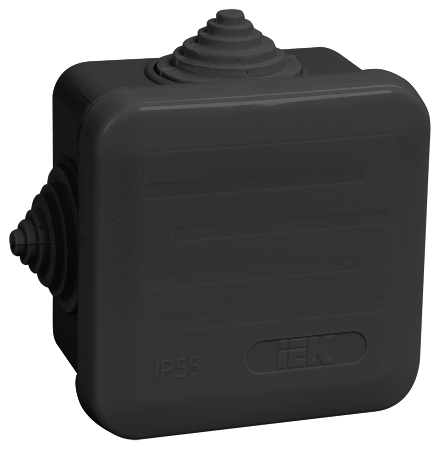 Наименование: Коробка распаячная КМ41236 для открытой проводки с защелкивающейся крышкой 70х70х40мм IP44 4 гермовводов черная (RAL 9005) IEK