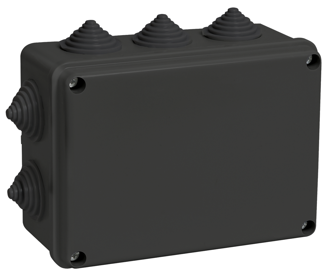 Наименование: Коробка распаячная КМ41241 для открытой проводки 150х110х70мм IP44 10 гермовводов черная (RAL 9005) IEK