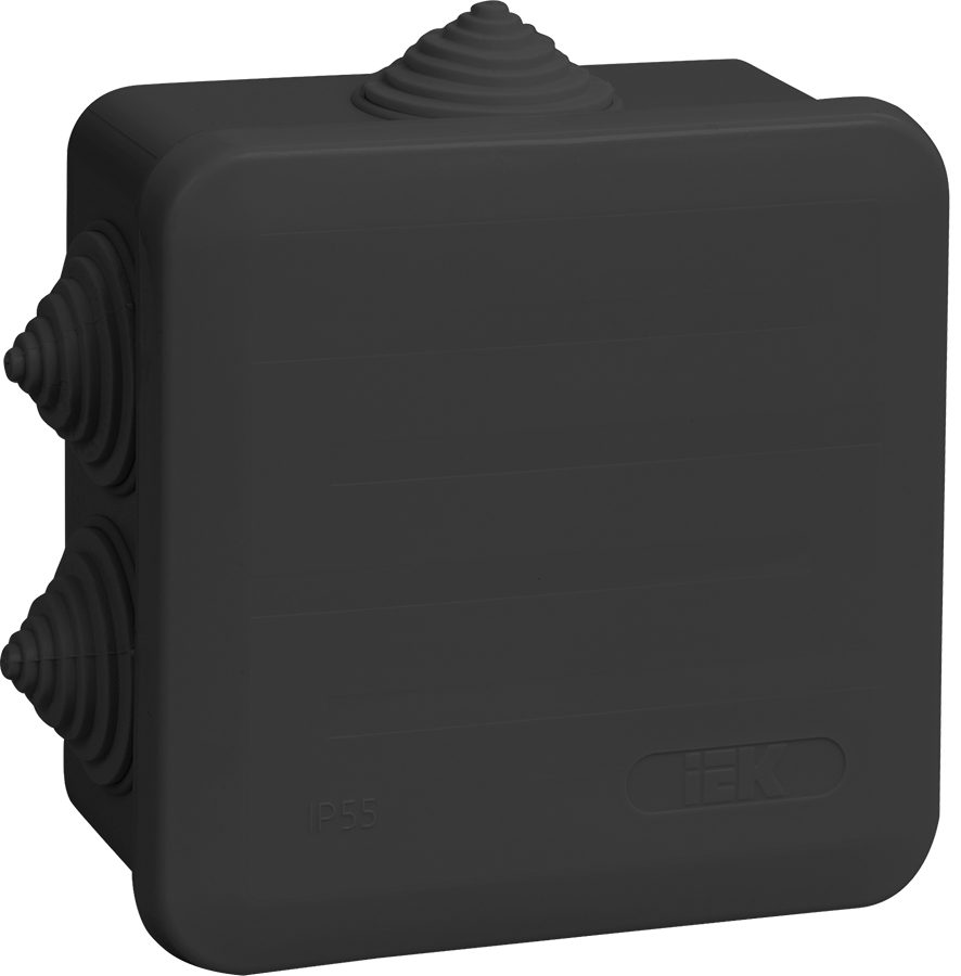 Наименование: Коробка распаячная КМ41255 для открытой проводки с защелкивающейся крышкой 100х100х50мм IP44 6 гермовводов черная (RAL 9005) IEK
