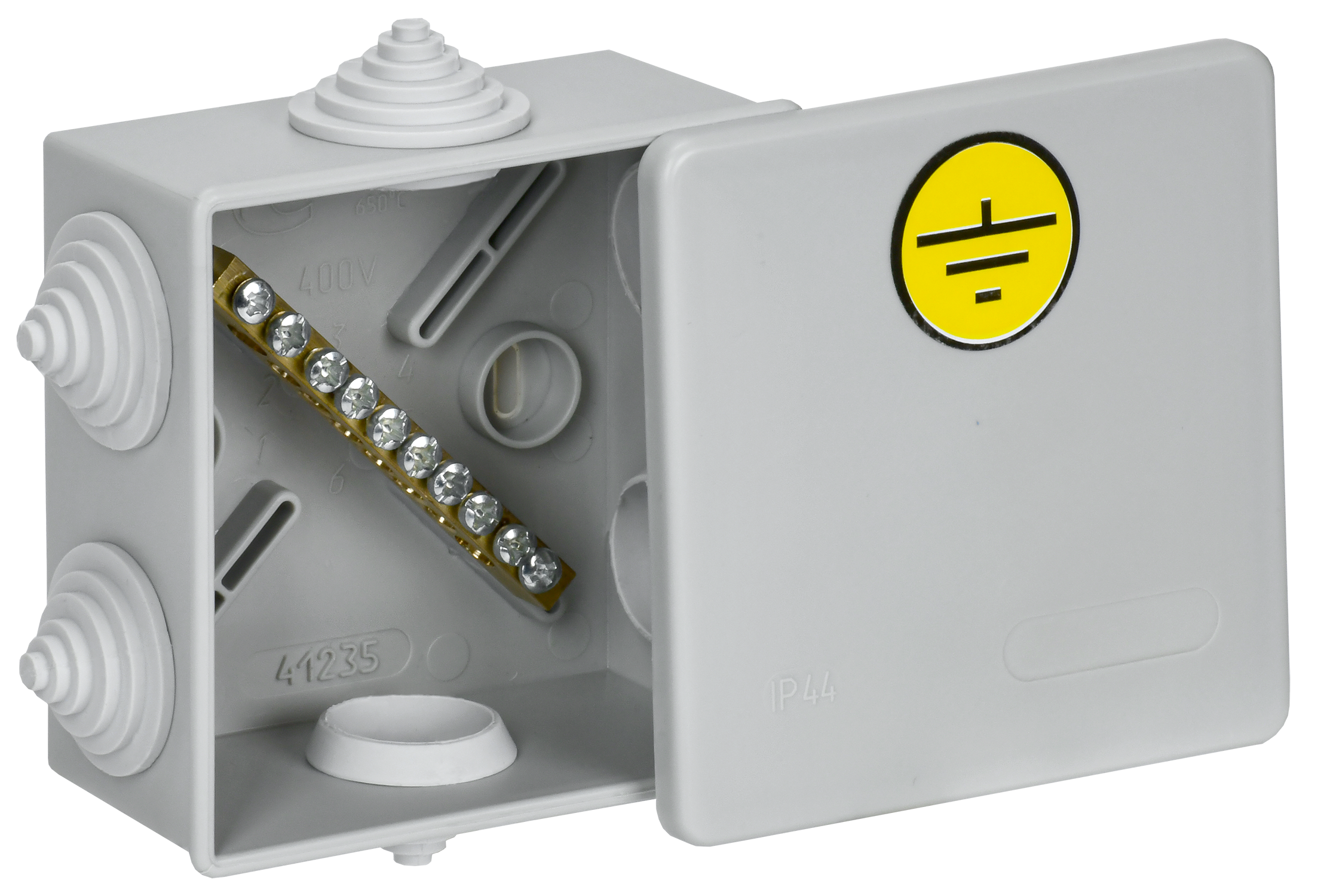 Наименование: Коробка уравнивания потенциалов КУП КМ41360 с защелкивающейся крышкой 85х85х40мм IP44 6 гермовводов (RAL 7035) IEK