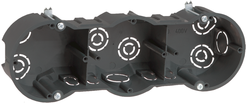 Наименование: Коробка установочная КМ40009 3-х местная 212х70х45мм для твердых стен (с саморезами) IEK