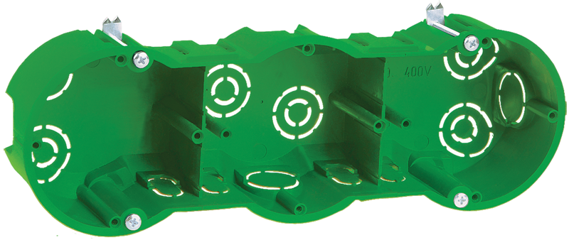 Наименование: Коробка установочная КМ40024 3-х местная 212х70x45мм для полых стен (с саморезами и металлическими лапками) IEK