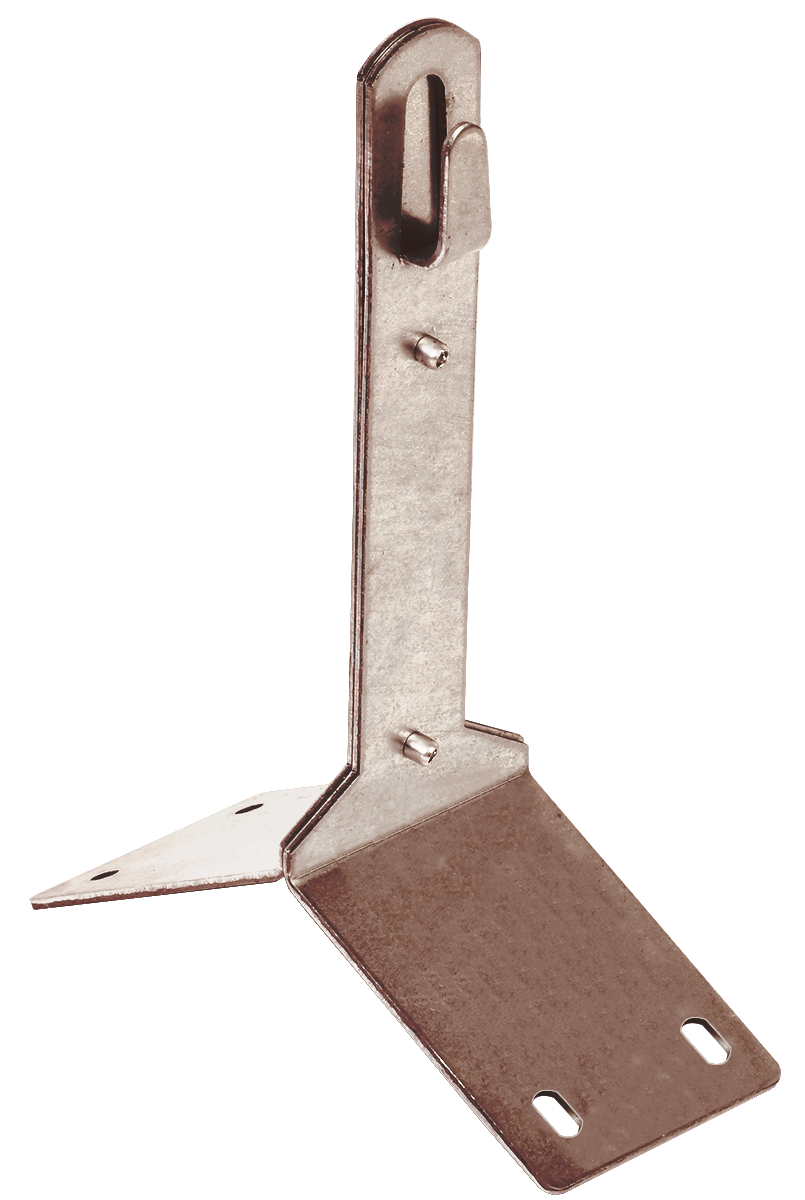 Описание: Держатель проводника круглого 6 – 8 мм для конька товарного знака IEK используется для закрепления прутка молниезащитной сетки на коньке скатной кровли. Выполнен на основе держателя круглого проводника 6 – 8 мм дополненных раздвижной скобой для установки на конек скатной кровли.