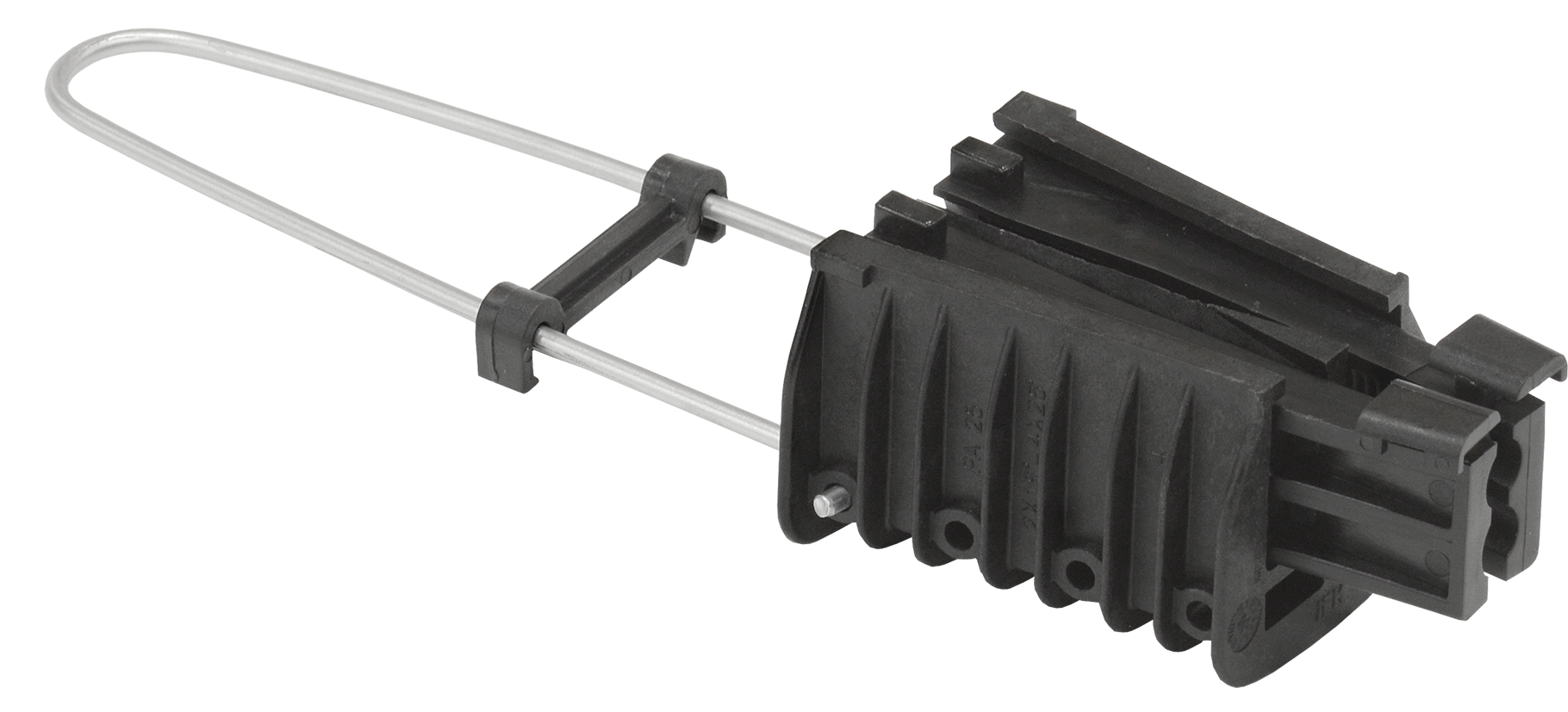 Преимущества: Зажим ЗАБ 16-25 не требует инструмента для монтажа, а легко снимаемая дужка зажима позволяет крепить его к кронштейнам и крюкам. Длина дужки варьируется от 90 до 150 мм, она также снабжена дополнительным фиксатором, не позволяющим ей выскочить из клинового нажима, например, во время повышенных ветровых нагрузок. Конструкция клиньев выполнена внешней относительно проводников. Таким образом фиксируемые провода легко вкладываются и зажимаются клиньями, что значительным образом сокращает время монтажа.