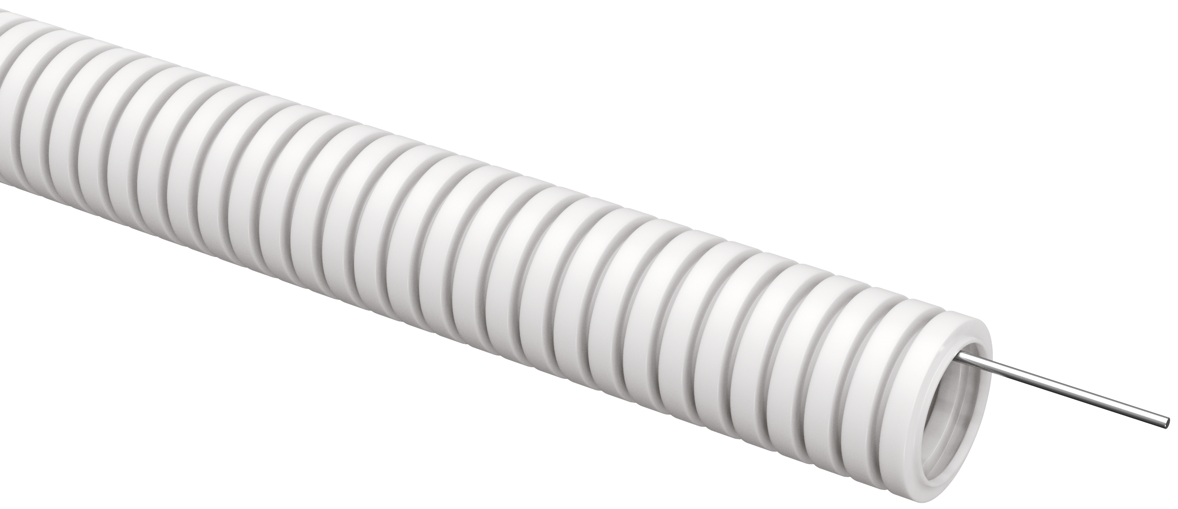Преимущества: Исключается возникновение пожара при коротком замыкании. Дополнительная защита проводки от механических повреждений. Материал, из которого сделаны трубы, является отличным диэлектриком. Гибкость труб обеспечивает быстроту и удобство монтажа с минимальным количеством аксессуаров. Удобство протяжки кабеля обеспечивается наличием зонда.