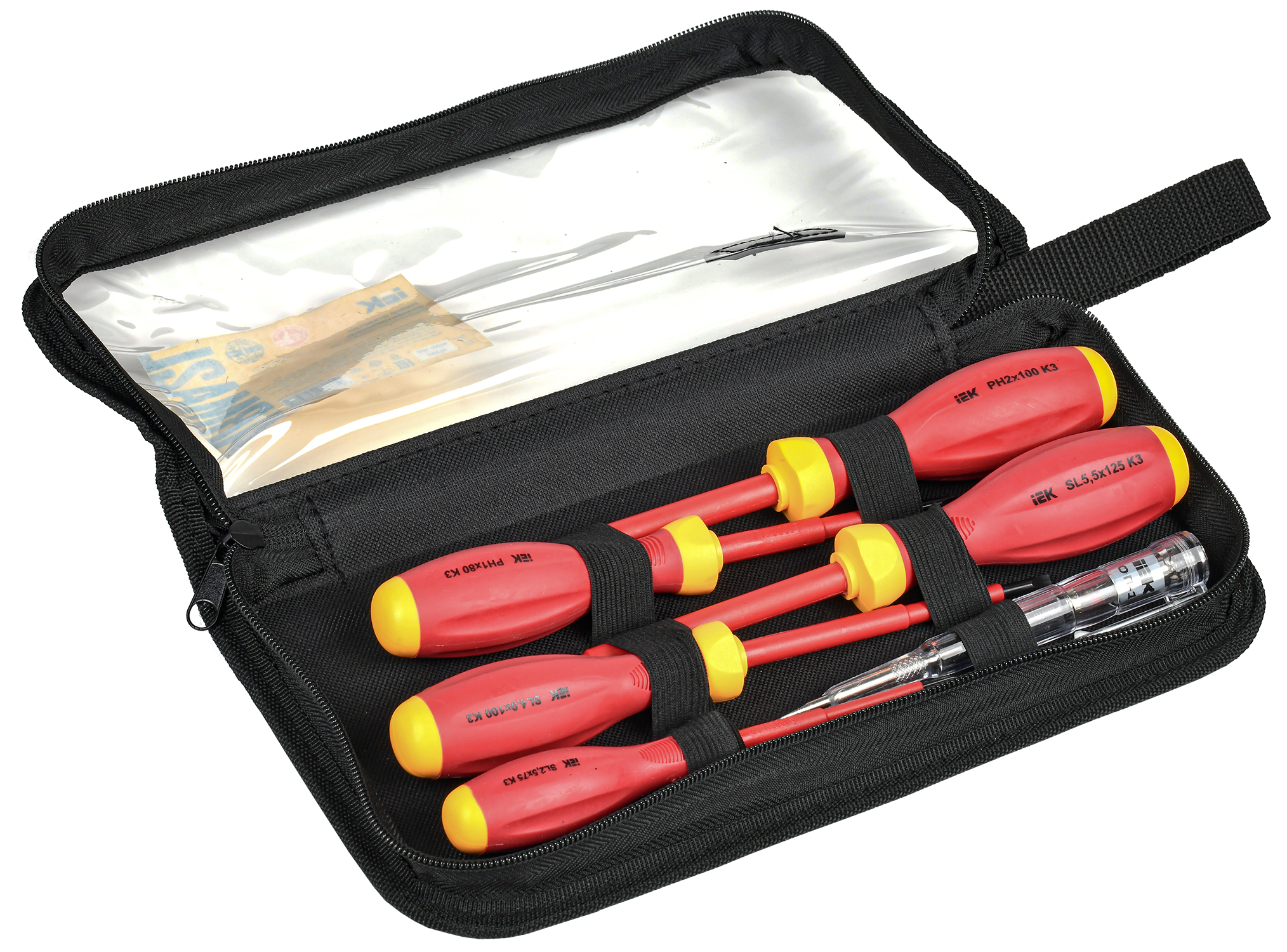 Описание: Набор диэлектрических отверток серии К3 рассчитан на использование под напряжением до 1000В. Набор включает в себя: крестообразную отвертку PH2х100; шлицевые - SL2,5х75, SL4,0х100, SL5,5х125; пассатижи К3 160мм и отвертку-пробник ОП-1. Материал рукояток – полипропилен и поливинилхлорид PP+PVC.