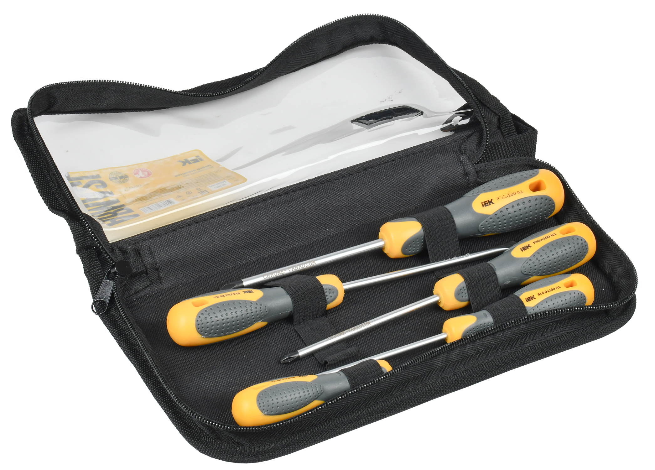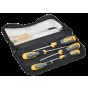 Преимущества: Антикорозионное покрытие Материал рукояток: 2-х-слойная термопластичная резина PP+TPR с повышенной стройкостью к агресивным средам, предотвращает скольжение при работе. Компактное хранение отверток в мягком пенале. Материал пенала обладает грязеотталкивающими свойствами.