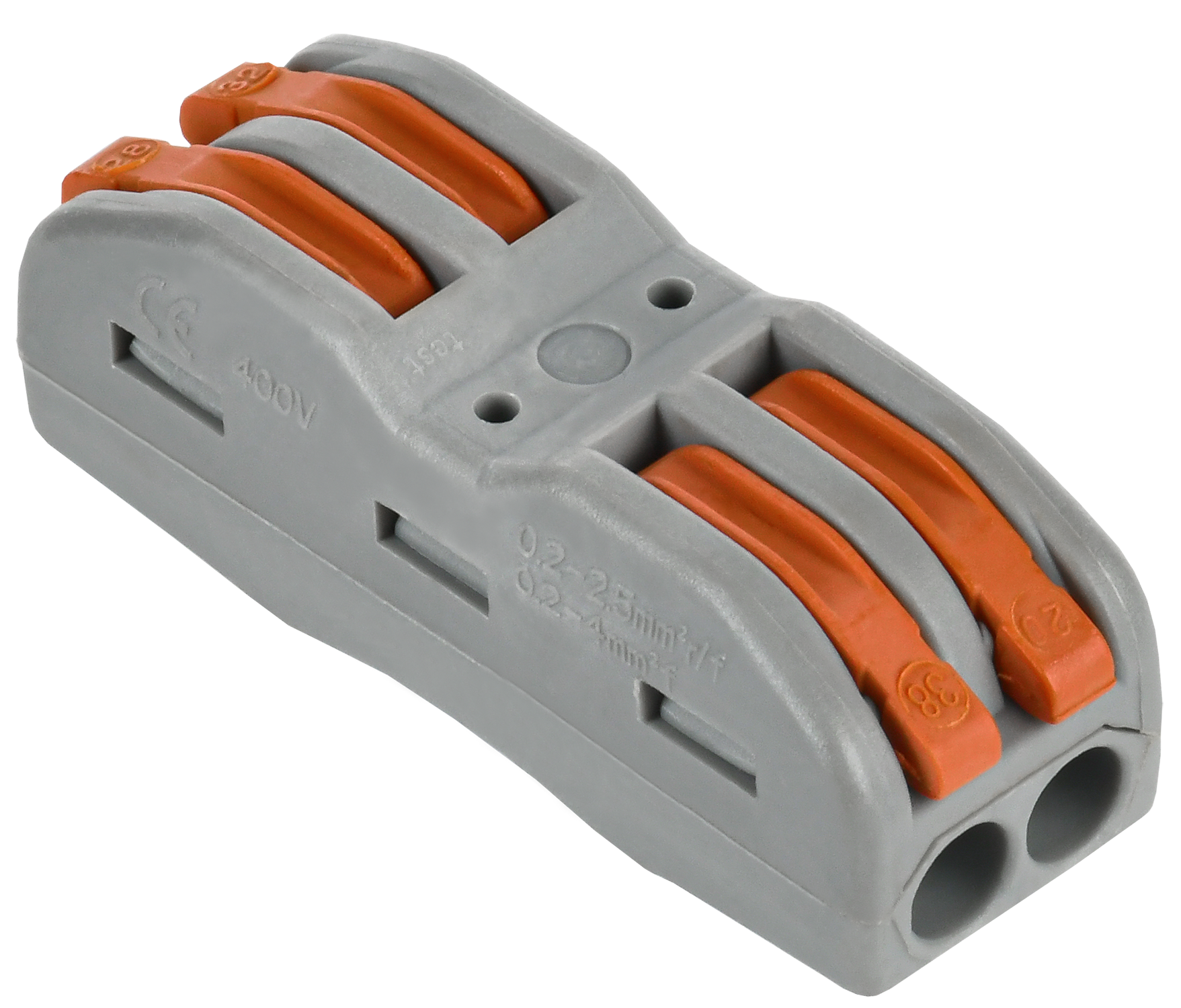 Описание: Клемма строительно-монтажная проходная серии 222 предназначена для соединения одножильных и многожильных медных проводников без использования инструмента в электрических сетях переменного и постоянного тока. Клемма допускает многократное присоединение и отсоединение проводников. Количество подключаемых проводников - 2/2.