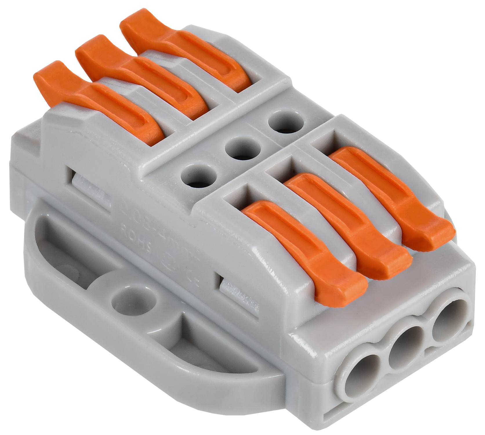 Описание: Клемма строительно-монтажная проходная с площадкой серии 222 предназначена для соединения одножильных и многожильных медных проводников без использования инструмента в электрических сетях переменного и постоянного тока. Клемма допускает многократное присоединение и отсоединение проводников. Количество подключаемых проводников - 3/3.