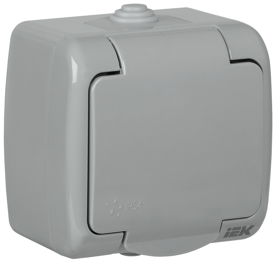Наименование: AQUATIC Розетка 1-местная с заземлением и крышкой для открытой установки 16А IP54 РСш12-2-А IEK