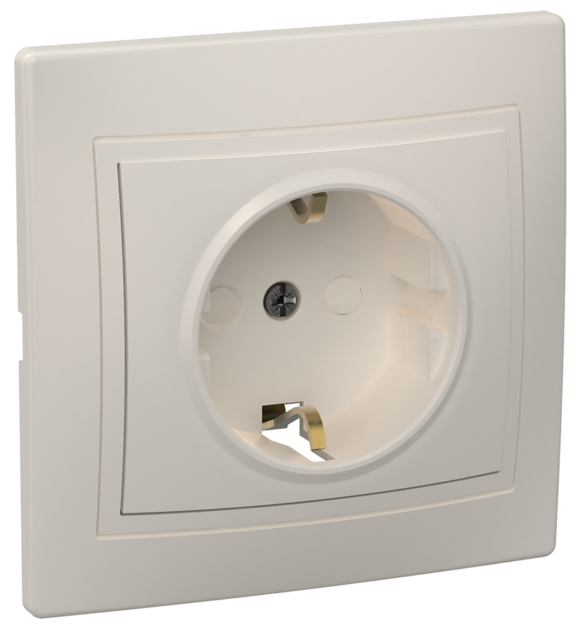 Наименование: KVARTA Розетка 1-местная с заземлением с защитными шторками 16А кер. РСш10-3-Км кремовый IEK