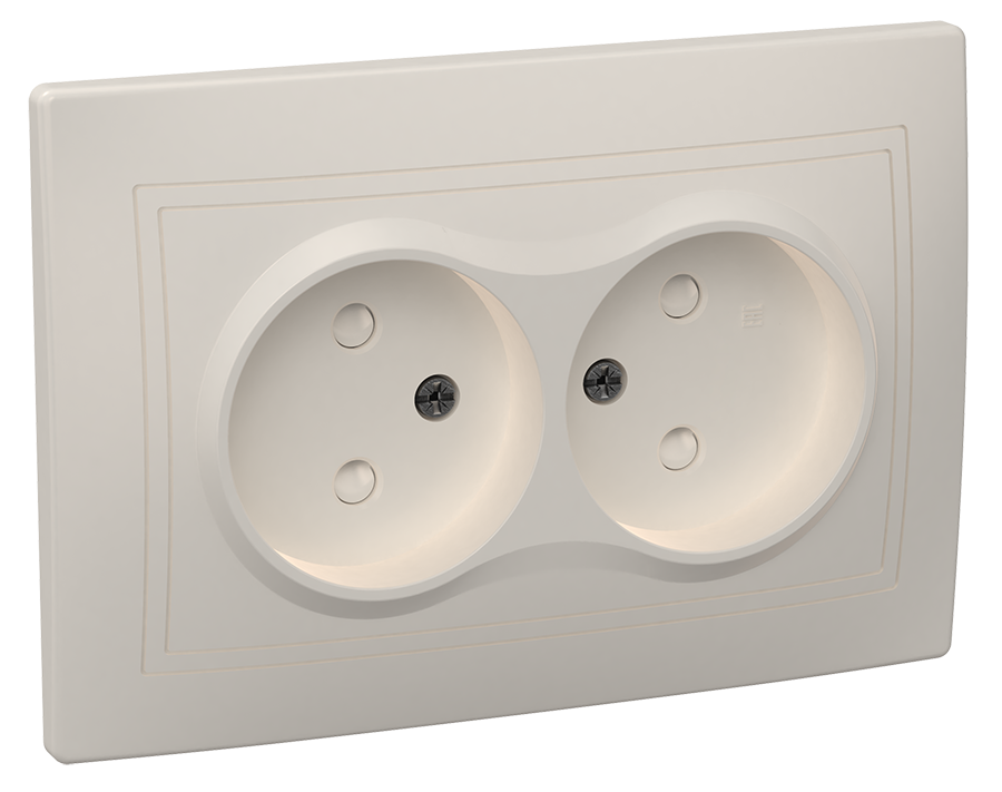 Наименование: KVARTA Розетка 2-местная без заземления с защитными шторками 10А РСш12-2-ККм кремовый IEK