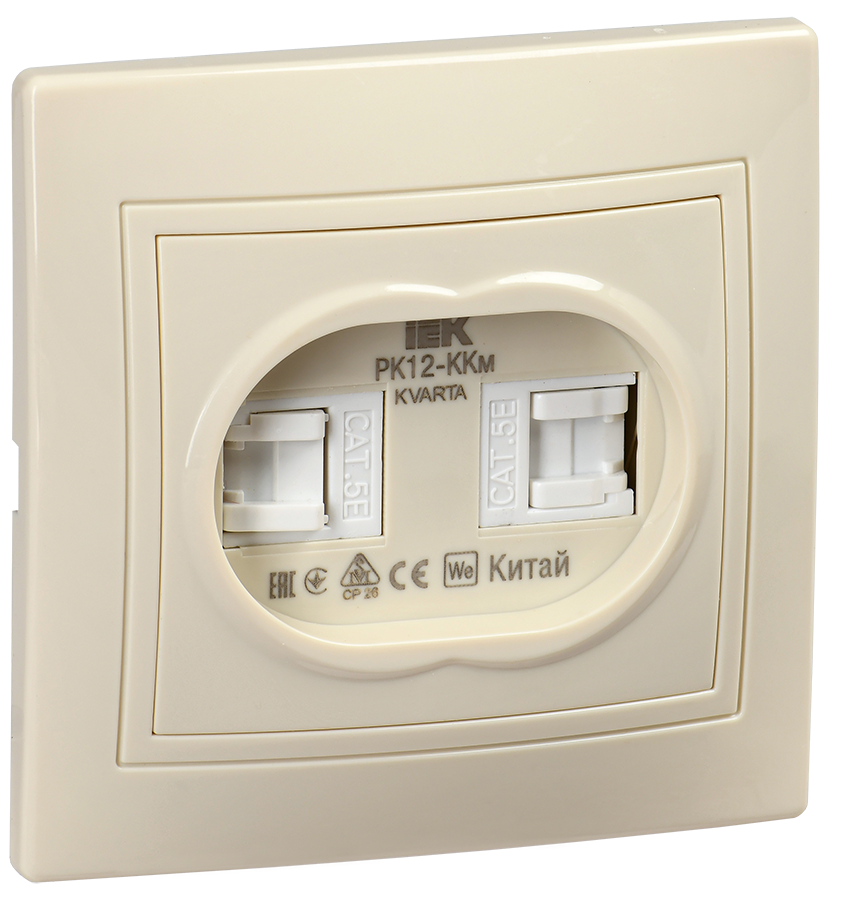 Наименование: KVARTA Розетка 2-местная компьютерная RJ45 кат.5е РК12-ККм кремовый IEK