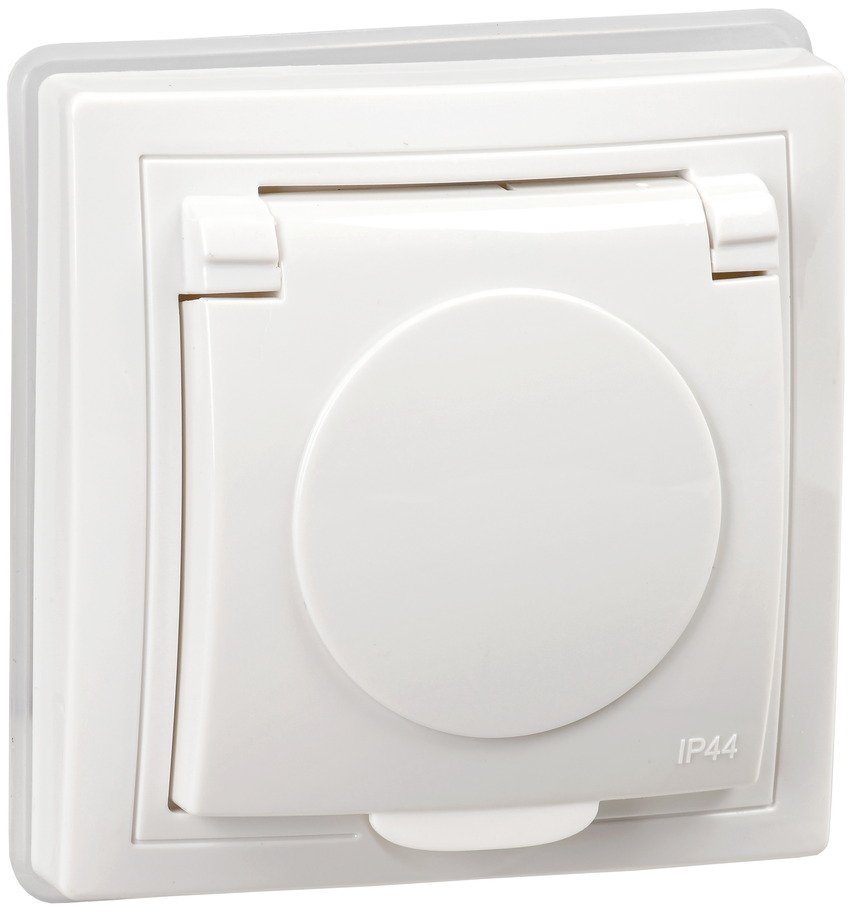 Наименование: KVARTA Розетка с заземлением с защитными шторками с крышкой 16А IP44 РСбш10-3-КБ-44 белый IEK