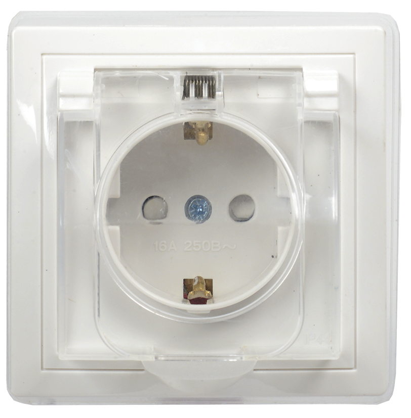 Наименование: KVARTA Розетка с заземлением с защитными шторками с крышкой IP44 16А кер РСбш10-3-ККБ-44 белый IEK