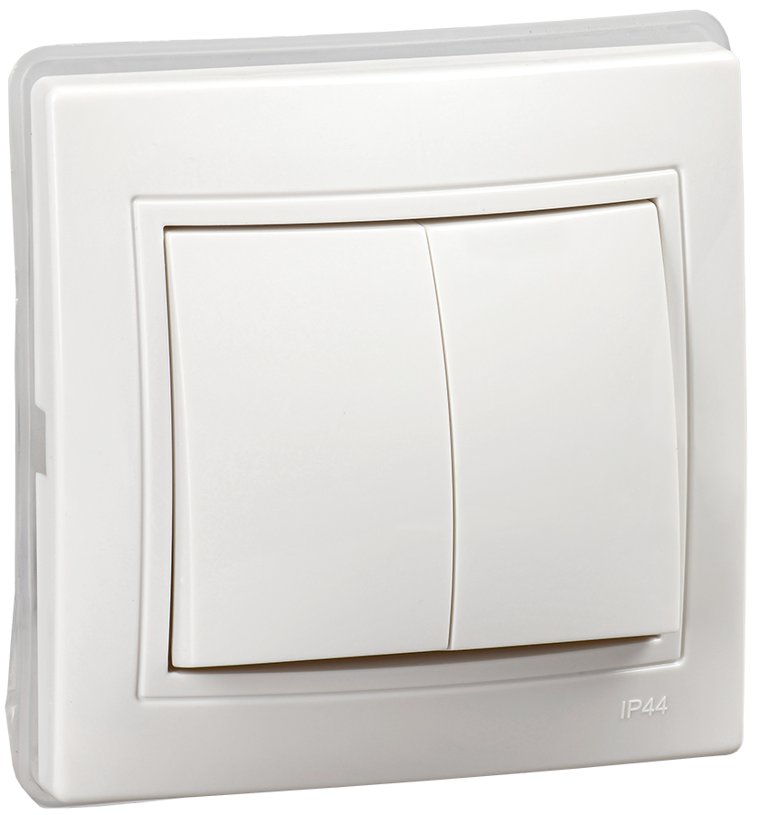 Наименование: KVARTA Выключатель 2-клавишный 10А IP44 ВС10-2-0-КБ-44 белый IEK