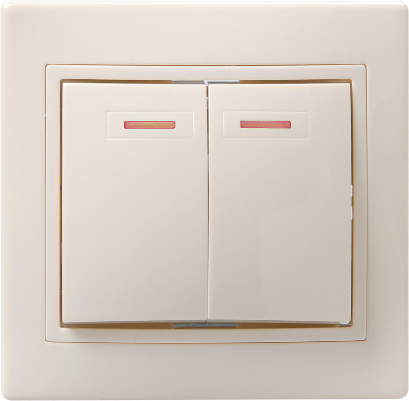 Наименование: KVARTA Выключатель 2-клавишный с индикацией 10А ВС10-2-1-ККм кремовый IEK