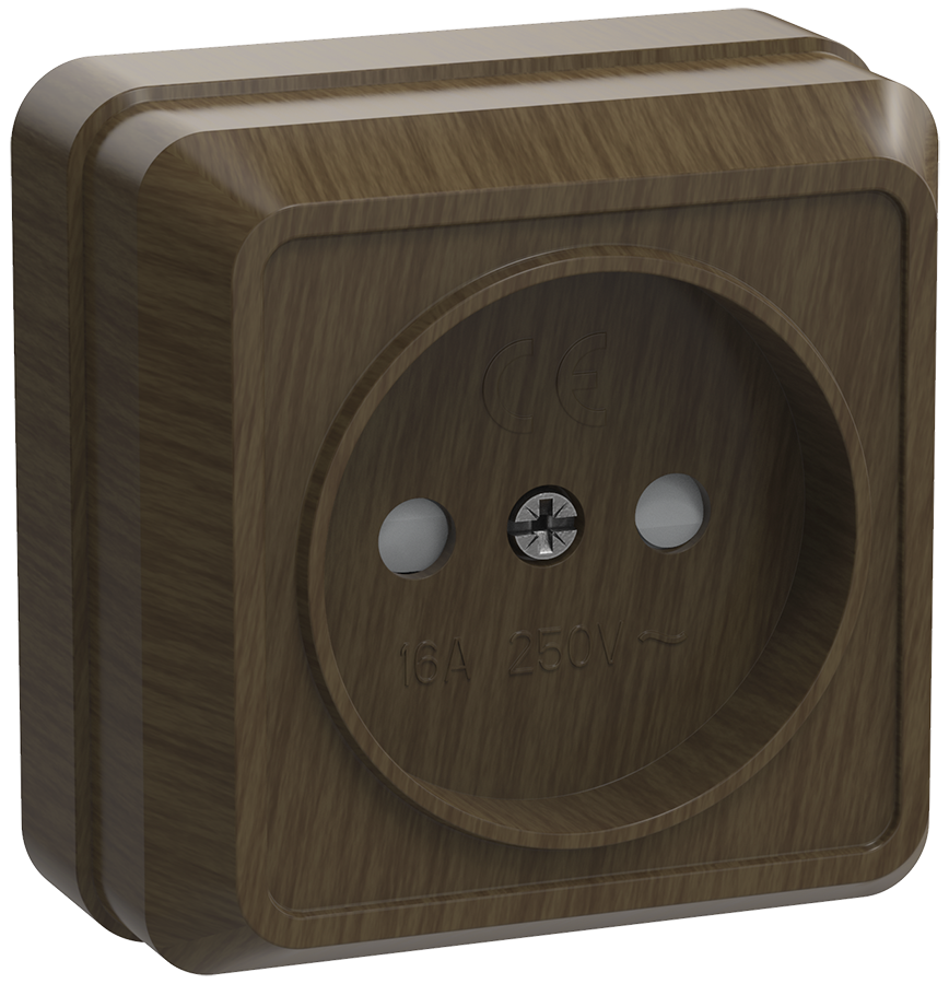 Наименование: OKTAVA Розетка 1-я без заземления с защитными шторками для открытой установки 10А РСш20-2-ОД дуб IEK