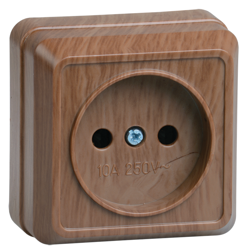 Наименование: OKTAVA Розетка 1-местная без заземления для открытой установки 10А РС20-2-ОД дуб IEK