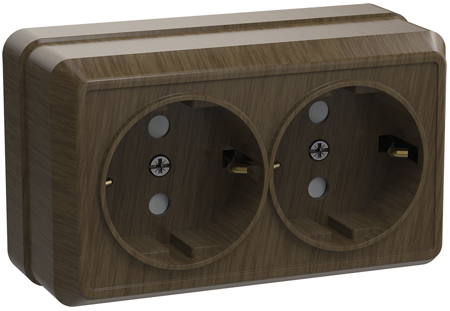 Наименование: OKTAVA Розетка 2-местная с заземлением для открытой установки 16А РС22-3-ОД дуб IEK