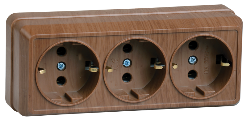 Наименование: OKTAVA Розетка 3-местная с заземлением для открытой установки 16А РС23-3-ОД дуб IEK