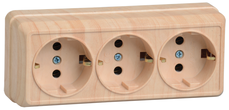 Наименование: OKTAVA Розетка 3-местная с заземлением для открытой установки 16А РС23-3-ОС сосна IEK