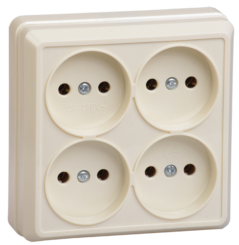 Наименование: OKTAVA Розетка 4-местная без заземления для открытой установки 10А РС24-2-ОК кремовый IEK
