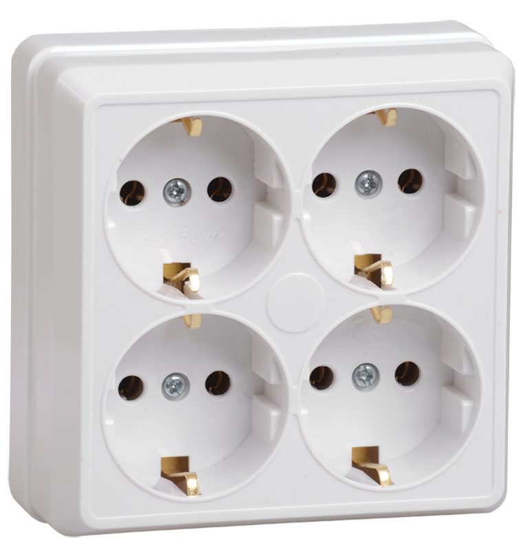 Наименование: OKTAVA Розетка 4-местная с заземлением для открытой установки 16А РС24-3-ОБ белый IEK