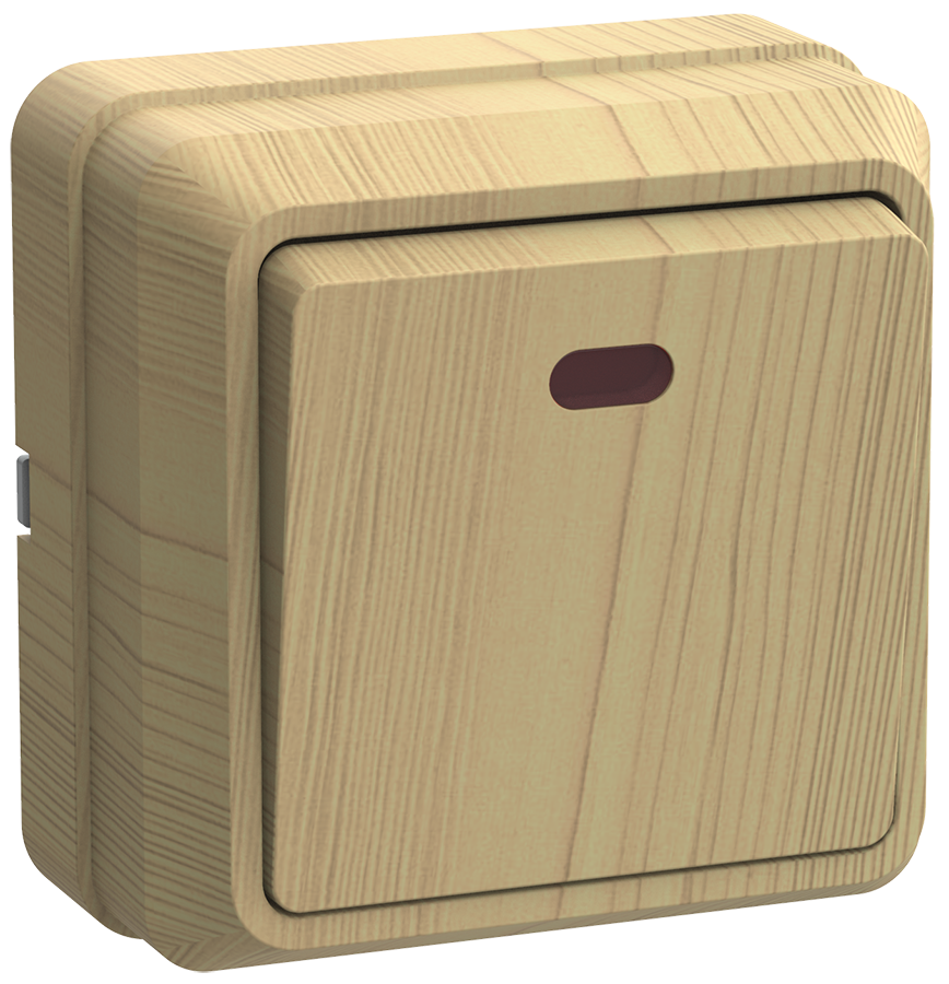 Наименование: OKTAVA Выключатель 1-клавишный с индикацией для открытой установки 10А ВС20-1-1-ОС сосна IEK