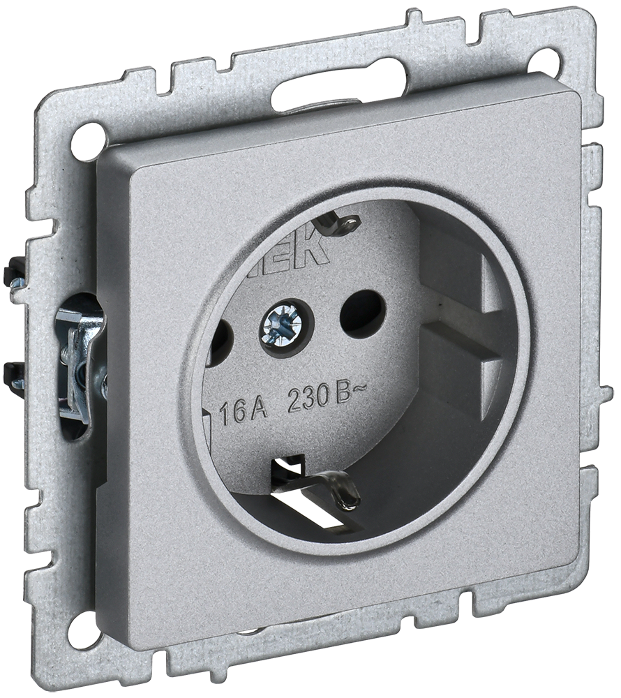 Наименование: BRITE Розетка 1-местная с заземлением с защитными шторками 16А РС14-1-0-БрА алюминий IEK