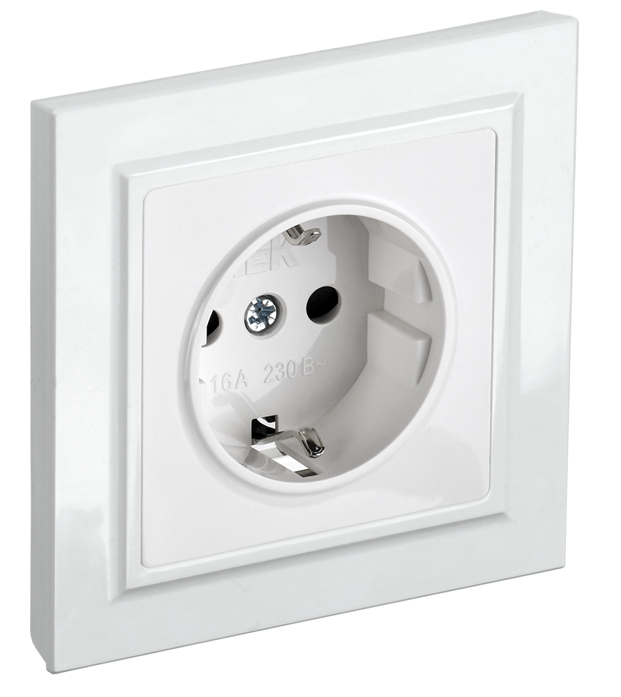 Наименование: BRITE Розетка 1-местная с заземлением с защитными шторками 16А в сборе РСР14-1-0-БрБ белый IEK